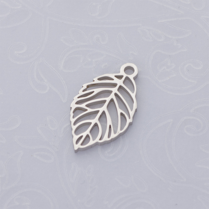 Zawieszka ze stali chirurgicznej liść w kolorze srebrnym 20x11mm