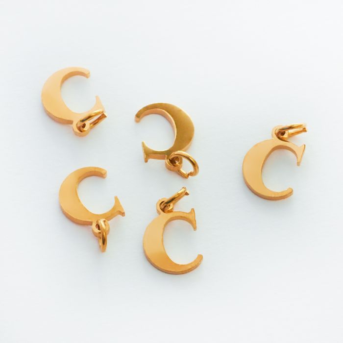 Zawieszka ze stali chirurgicznej literka C w kolorze złotym 8mm