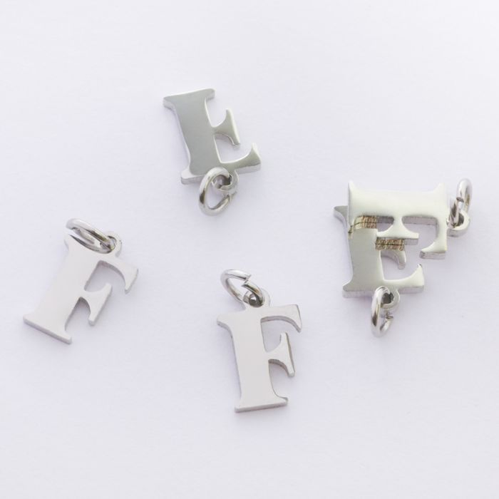Zawieszka ze stali chirurgicznej literka F w kolorze srebrnym 10mm