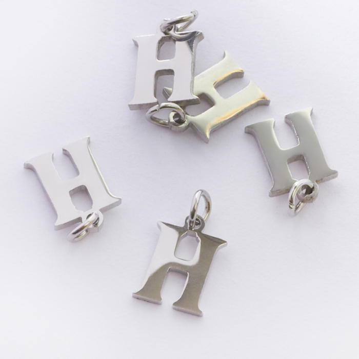Zawieszka ze stali chirurgicznej literka H w kolorze srebrnym 8mmTo trwały element biżuterii lub półfabrykat jubilerski, który dobrze sprawdza się w codziennych realizacjach. Stal chirurgiczna 316L jest ceniona za odporność na korozję i estetyczny wygląd w codziennym użytkowaniu.Zawieszka ze stali chirurgicznej 316L to dekoracyjny element, który nadaje biżuterii charakteru i pozwala tworzyć spersonalizowane projekty. Świetnie sprawdza się w naszyjnikach, bransoletkach, kolczykach oraz drobnych charmsach.Forma lub motyw