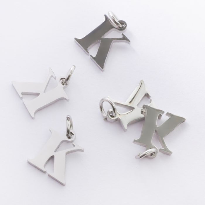 Zawieszka ze stali chirurgicznej literka K w kolorze srebrnym 9mm