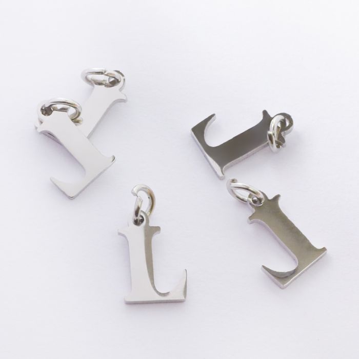 Zawieszka ze stali chirurgicznej literka L w kolorze srebrnym 8mm