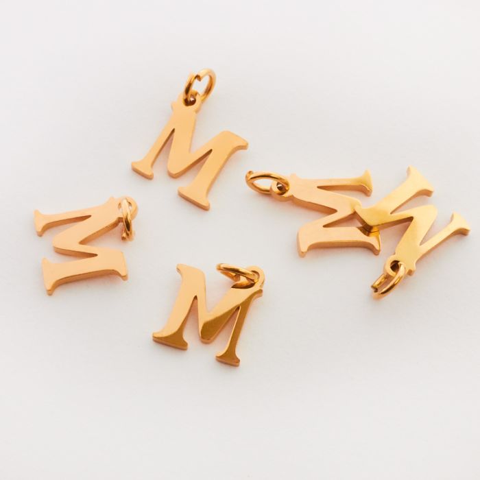 Zawieszka ze stali chirurgicznej literka M w kolorze złotym 8mm