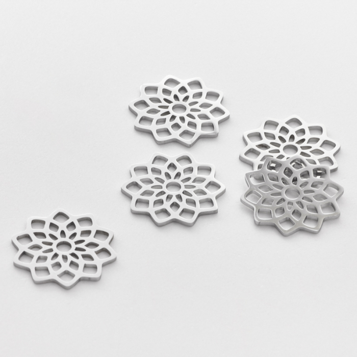 Zawieszka ze stali chirurgicznej mandala w kolorze srebrnym 20mmTo starannie wykonany produkt ze stali chirurgicznej 316L, który dobrze prezentuje się w codziennym użytkowaniu. W biżuterii handmade stal chirurgiczna 316L jest ceniona za dobry wygląd, odporność na korozję i wygodę codziennego użytkowania.Zawieszka ze stali chirurgicznej 316L to dekoracyjny element, który nadaje biżuterii charakteru i pozwala tworzyć spersonalizowane projekty. Świetnie sprawdza się w naszyjnikach, bransoletkach, kolczykach oraz drobnych charmsach.Forma lub motyw