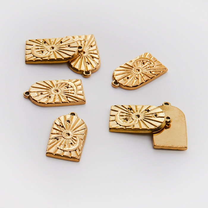 Zawieszka ze stali chirurgicznej medalion ze słońcem i księżycem w kolorze złotym 19mm PVDTo dopracowany produkt ze stali chirurgicznej 316L, który łączy praktyczność z estetycznym wyglądem. To materiał chętnie wybierany do biżuterii handmade ze względu na trwałość, estetykę i wygodę użytkowania. Wykończenie w kolorze złotym uzyskane metodą PVD.Zawieszka ze stali chirurgicznej 316L to dekoracyjny element, który nadaje biżuterii charakteru i pozwala tworzyć spersonalizowane projekty. Świetnie sprawdza się w naszyjnikach, bransoletkach, kolczykach oraz drobnych charmsach.Forma lub motyw