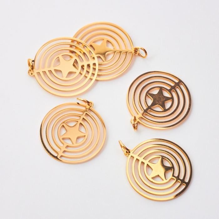 Zawieszka ze stali chirurgicznej mini gwiazdka w kółkach do naszyjników w kolorze złotym 22mmTo trwały element biżuterii lub półfabrykat jubilerski, który dobrze sprawdza się w codziennych realizacjach. Stal chirurgiczna 316L dobrze sprawdza się w biżuterii noszonej na co dzień, ponieważ łączy trwałość z estetycznym wykończeniem.Naszyjnik ze stali chirurgicznej 316L to gotowy element biżuterii lub baza do dalszego personalizowania, w zależności od konstrukcji produktu. Dobrze sprawdza się w codziennym noszeniu i pozwala łatwo dopasować styl projektu do pozostałych dodatków.Rozmiar