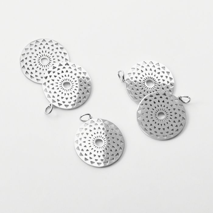 Zawieszka ze stali chirurgicznej mini trójkąciki w kółku do naszyjników w kolorze srebrnym 21mm