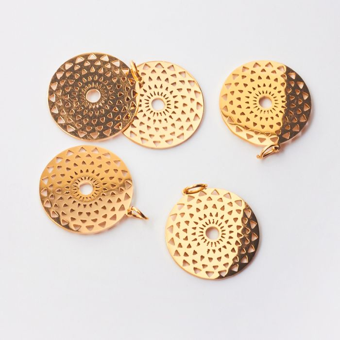 Zawieszka ze stali chirurgicznej mini trójkąciki w kółku do naszyjników w kolorze złotym 21mm