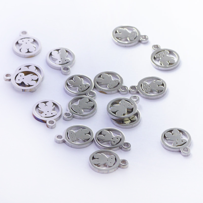 Zawieszka ze stali chirurgicznej miś w kolorze srebrnym 9,6mm