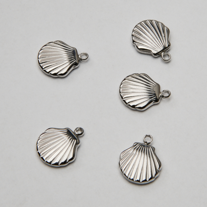 Zawieszka ze stali chirurgicznej muszelka w kolorze srebrnym 12,5mm