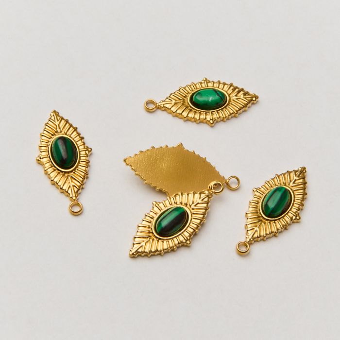 Zawieszka ze stali chirurgicznej oczko z malachitem w kolorze złotym 20mm PVD