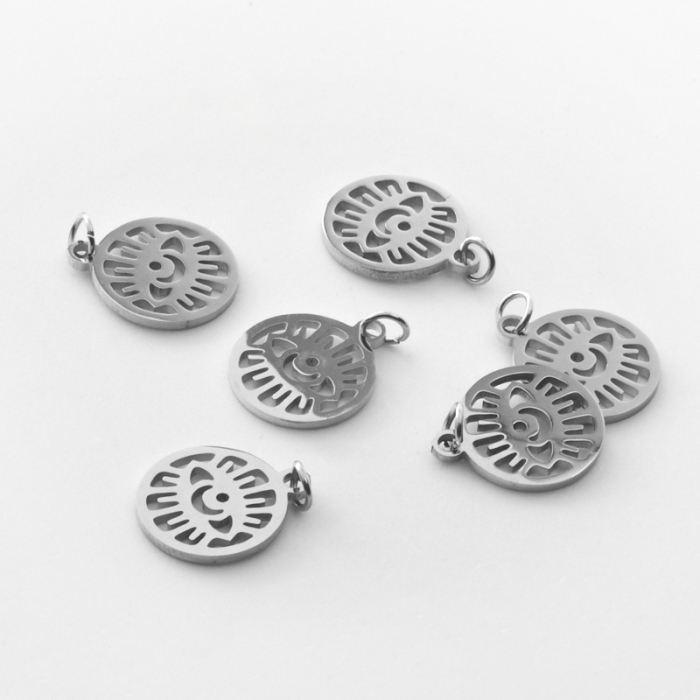 Zawieszka ze stali chirurgicznej oko proroka w kolorze srebrnym 14mmTo starannie wykonany produkt ze stali chirurgicznej 316L, który dobrze prezentuje się w codziennym użytkowaniu. To materiał chętnie wybierany do biżuterii handmade ze względu na trwałość, estetykę i wygodę użytkowania.Zawieszka ze stali chirurgicznej 316L to dekoracyjny element, który nadaje biżuterii charakteru i pozwala tworzyć spersonalizowane projekty. Świetnie sprawdza się w naszyjnikach, bransoletkach, kolczykach oraz drobnych charmsach.Forma lub motyw