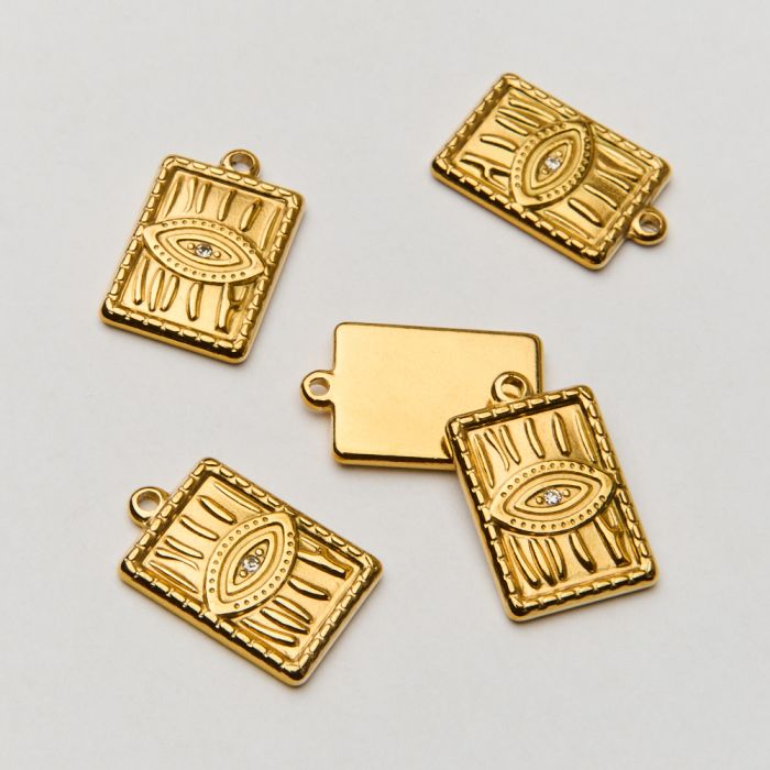 Zawieszka ze stali chirurgicznej oko proroka z cyrkonią w kolorze złotym 21,5mm PVD