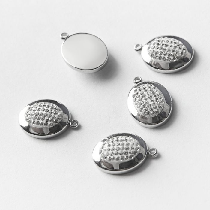 Zawieszka ze stali chirurgicznej owal wysadzany cyrkoniami w kolorze srebrnym 17mm
