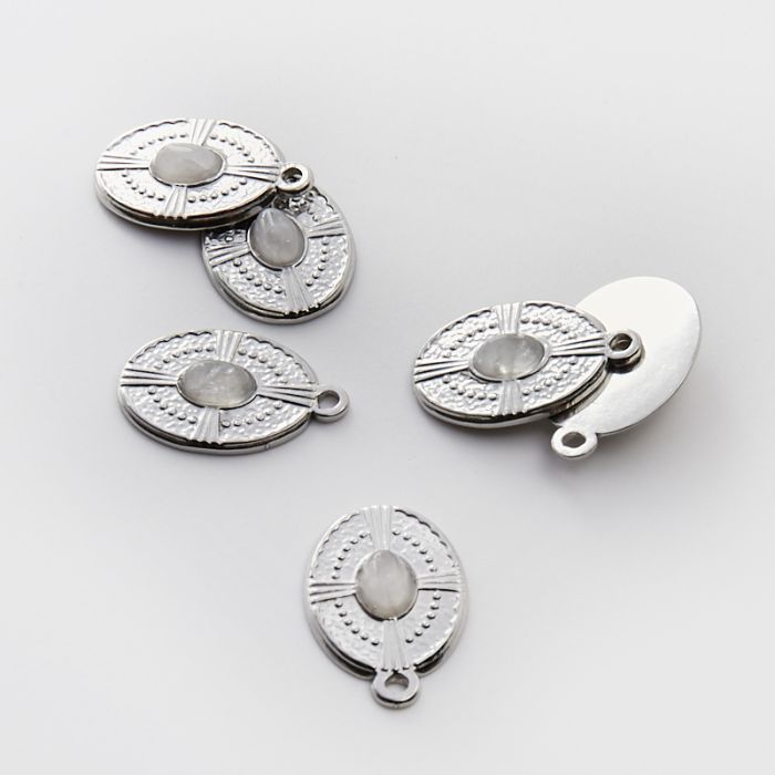 Zawieszka ze stali chirurgicznej owal z kryształem górskim w kolorze srebrnym 21mm