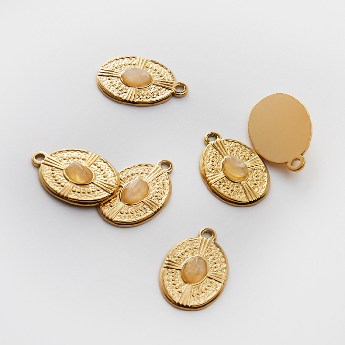 Zawieszka ze stali chirurgicznej owal z kryształem górskim w kolorze złotym 21mm PVDTo starannie wykonany produkt ze stali chirurgicznej 316L, który dobrze prezentuje się w codziennym użytkowaniu. W biżuterii handmade stal chirurgiczna 316L jest ceniona za dobry wygląd, odporność na korozję i wygodę codziennego użytkowania. Wykończenie w kolorze złotym uzyskane metodą PVD.Zawieszka ze stali chirurgicznej 316L to dekoracyjny element, który nadaje biżuterii charakteru i pozwala tworzyć spersonalizowane projekty. Świetnie sprawdza się w naszyjnikach, bransoletkach, kolczykach oraz drobnych charmsach.Forma lub motyw