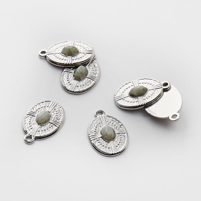 Zawieszka ze stali chirurgicznej owal z labradorytem w kolorze srebrnym 21mm