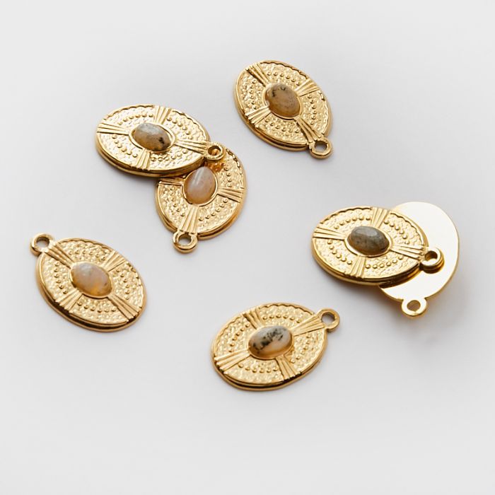 Zawieszka ze stali chirurgicznej owal z labradorytem w kolorze złotym 21mm PVD