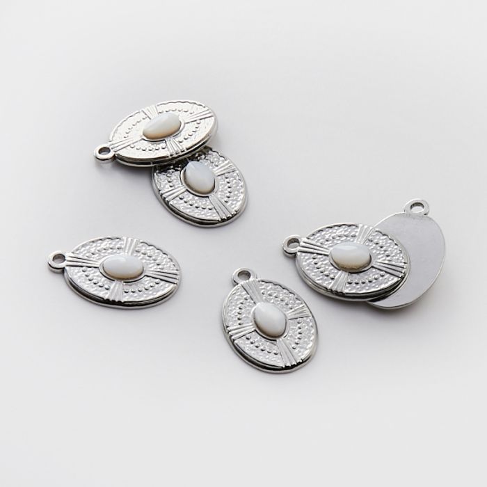 Zawieszka ze stali chirurgicznej owal z masą perłową w kolorze srebrnym 21mm