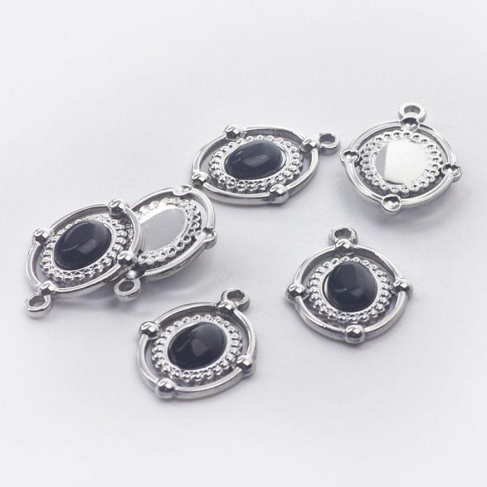 Zawieszka ze stali chirurgicznej owal z onyksem 21,5mm