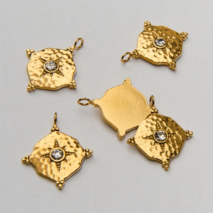 Zawieszka ze stali chirurgicznej ozdobna z białą cyrkonią w kolorze złotym 20mm PVD
