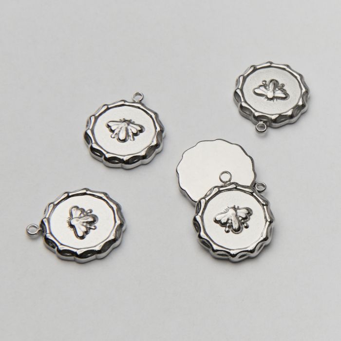 Zawieszka ze stali chirurgicznej ozdobne kółko z ćmą w kolorze srebrnym 15mm