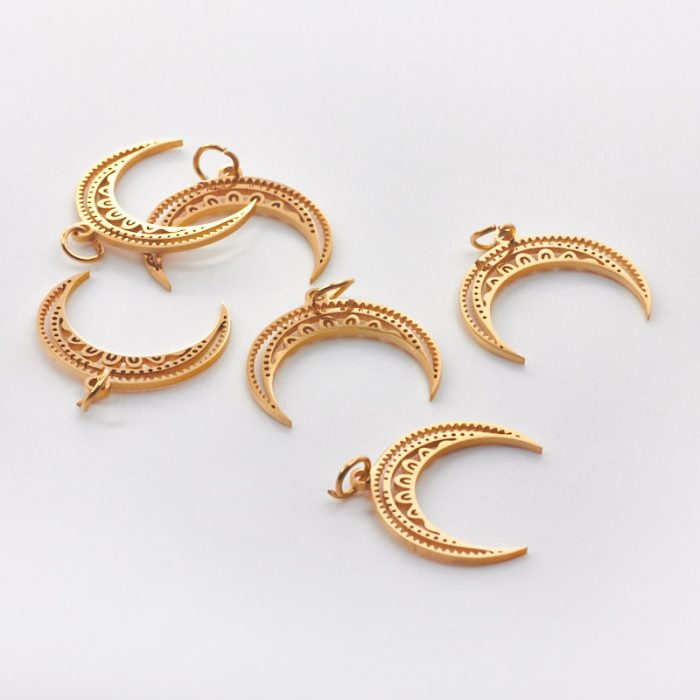 Zawieszka ze stali chirurgicznej ozdobny róg obfitości w kolorze złotym 14,5mmTo estetyczny element biżuteryjny ze stali szlachetnej, chętnie wybierany do nowoczesnych projektów. To materiał chętnie wybierany do biżuterii handmade ze względu na trwałość, estetykę i wygodę użytkowania.Zawieszka ze stali szlachetnej to dekoracyjny element, który nadaje biżuterii charakteru i pozwala tworzyć spersonalizowane projekty. Świetnie sprawdza się w naszyjnikach, bransoletkach, kolczykach oraz drobnych charmsach.Forma lub motyw