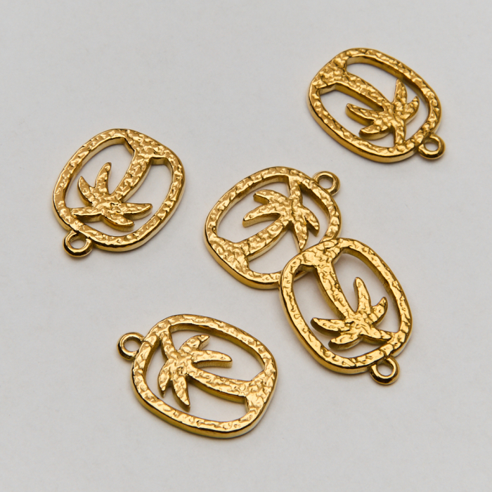 Zawieszka ze stali chirurgicznej palma w kolorze złotym 19mm PVD