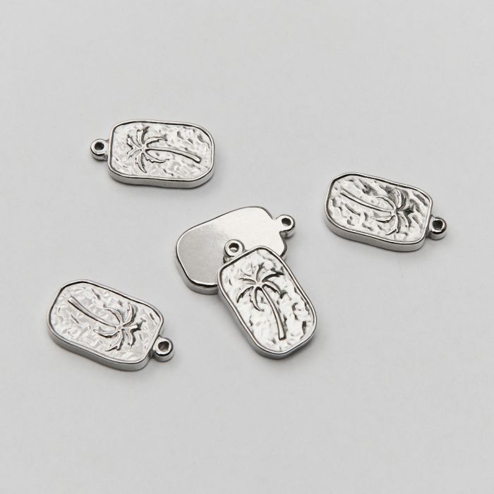 Zawieszka ze stali chirurgicznej palma w prostokącie w kolorze srebrnym 17,5mm
