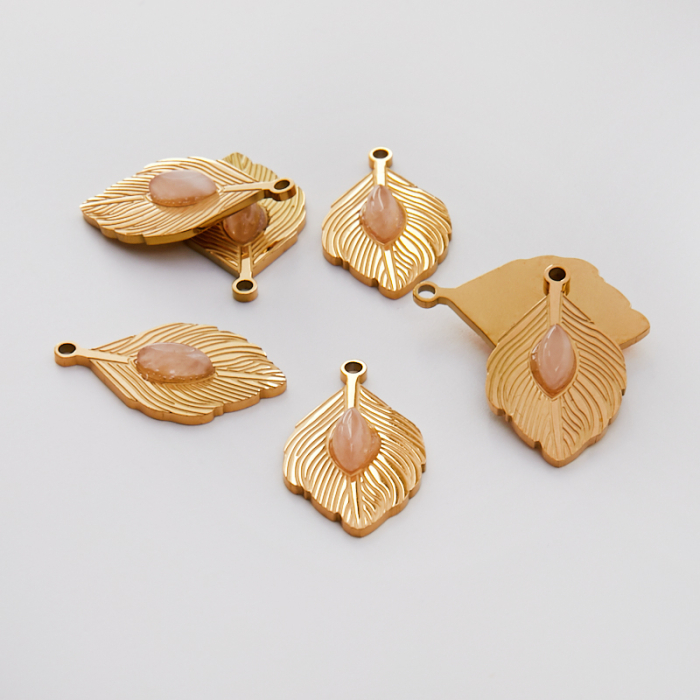 Zawieszka ze stali chirurgicznej pawie pióro z kryształem górskim w kolorze złotym 26mm PVDTo trwały element biżuterii lub półfabrykat jubilerski, który dobrze sprawdza się w codziennych realizacjach. To materiał chętnie wybierany do biżuterii handmade ze względu na trwałość, estetykę i wygodę użytkowania. Wykończenie w kolorze złotym uzyskane metodą PVD.Zawieszka ze stali chirurgicznej 316L to dekoracyjny element, który nadaje biżuterii charakteru i pozwala tworzyć spersonalizowane projekty. Świetnie sprawdza się w naszyjnikach, bransoletkach, kolczykach oraz drobnych charmsach.Forma lub motyw