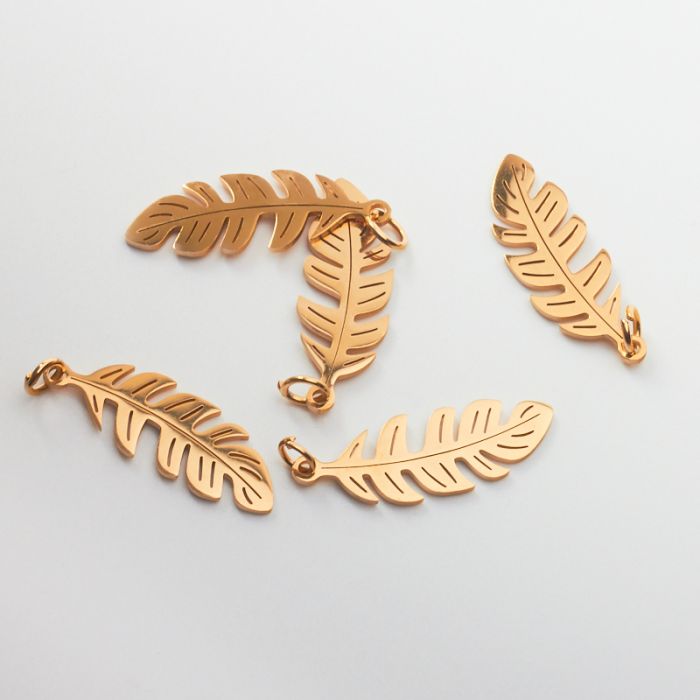 Zawieszka ze stali chirurgicznej piórko w kolorze złotym 25mm