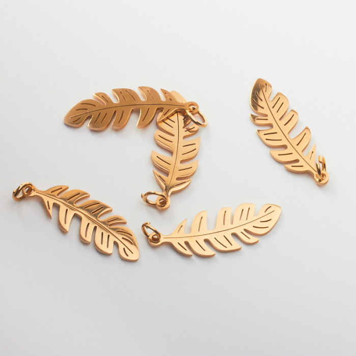 Zawieszka ze stali chirurgicznej piórko w kolorze złotym 25mmTo estetyczny element biżuteryjny ze stali chirurgicznej 316L, chętnie wybierany do nowoczesnych projektów. To materiał chętnie wybierany do biżuterii handmade ze względu na trwałość, estetykę i wygodę użytkowania.Zawieszka ze stali chirurgicznej 316L to dekoracyjny element, który nadaje biżuterii charakteru i pozwala tworzyć spersonalizowane projekty. Świetnie sprawdza się w naszyjnikach, bransoletkach, kolczykach oraz drobnych charmsach.Forma lub motyw