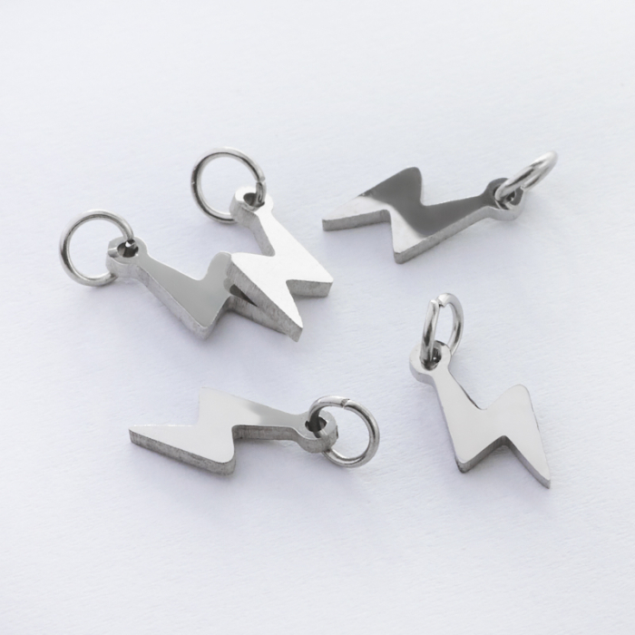 Zawieszka ze stali chirurgicznej piorun kolor srebrny 14mmTo estetyczny element biżuteryjny ze stali chirurgicznej 316L, chętnie wybierany do nowoczesnych projektów. Stal chirurgiczna 316L dobrze sprawdza się w biżuterii noszonej na co dzień, ponieważ łączy trwałość z estetycznym wykończeniem.Zawieszka ze stali chirurgicznej 316L to dekoracyjny element, który nadaje biżuterii charakteru i pozwala tworzyć spersonalizowane projekty. Świetnie sprawdza się w naszyjnikach, bransoletkach, kolczykach oraz drobnych charmsach.Forma lub motyw