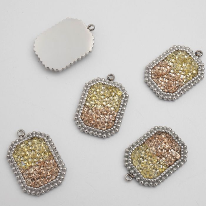 Zawieszka ze stali chirurgicznej prostokąt wysadzany cyrkoniami w kolorze srebrnym 21mm