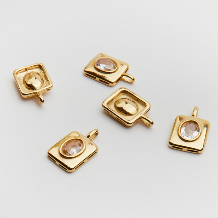 Zawieszka ze stali chirurgicznej prostokąt z białą cyrkonią w kolorze złotym 20,5mm PVDTo starannie wykonany produkt ze stali chirurgicznej 316L, który dobrze prezentuje się w codziennym użytkowaniu. Stal chirurgiczna 316L dobrze sprawdza się w biżuterii noszonej na co dzień, ponieważ łączy trwałość z estetycznym wykończeniem. Wykończenie w kolorze złotym uzyskane metodą PVD.Zawieszka ze stali chirurgicznej 316L to dekoracyjny element, który nadaje biżuterii charakteru i pozwala tworzyć spersonalizowane projekty. Świetnie sprawdza się w naszyjnikach, bransoletkach, kolczykach oraz drobnych charmsach.Forma lub motyw