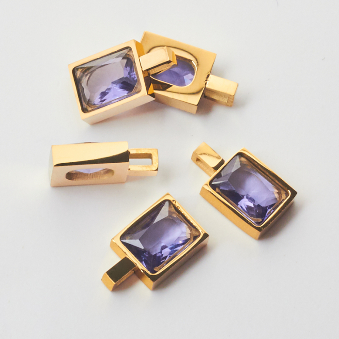 Zawieszka ze stali chirurgicznej prostokąt z cyrkonią amethyst w kolorze złotym 9,5x7,5mmTo starannie wykonany produkt ze stali chirurgicznej 316L, który dobrze prezentuje się w codziennym użytkowaniu. Stal chirurgiczna 316L dobrze sprawdza się w biżuterii noszonej na co dzień, ponieważ łączy trwałość z estetycznym wykończeniem.Zawieszka ze stali chirurgicznej 316L to dekoracyjny element, który nadaje biżuterii charakteru i pozwala tworzyć spersonalizowane projekty. Świetnie sprawdza się w naszyjnikach, bransoletkach, kolczykach oraz drobnych charmsach.Forma lub motyw