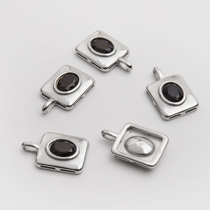 Zawieszka ze stali chirurgicznej prostokąt z czarną cyrkonią w kolorze srebrnym 20,5mm