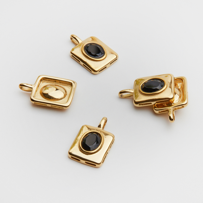 Zawieszka ze stali chirurgicznej prostokąt z czarną cyrkonią w kolorze złotym 20,5mm PVDTo trwały element biżuterii lub półfabrykat jubilerski, który dobrze sprawdza się w codziennych realizacjach. To materiał chętnie wybierany do biżuterii handmade ze względu na trwałość, estetykę i wygodę użytkowania. Wykończenie w kolorze złotym uzyskane metodą PVD.Zawieszka ze stali chirurgicznej 316L to dekoracyjny element, który nadaje biżuterii charakteru i pozwala tworzyć spersonalizowane projekty. Świetnie sprawdza się w naszyjnikach, bransoletkach, kolczykach oraz drobnych charmsach.Forma lub motyw
