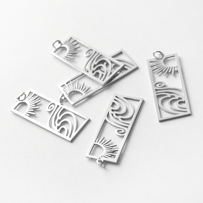 Zawieszka ze stali chirurgicznej prostokąt z krajobrazem w kolorze srebrnym 32x12mmTo dopracowany produkt ze stali chirurgicznej 316L, który łączy praktyczność z estetycznym wyglądem. Stal chirurgiczna 316L dobrze sprawdza się w biżuterii noszonej na co dzień, ponieważ łączy trwałość z estetycznym wykończeniem.Zawieszka ze stali chirurgicznej 316L to dekoracyjny element, który nadaje biżuterii charakteru i pozwala tworzyć spersonalizowane projekty. Świetnie sprawdza się w naszyjnikach, bransoletkach, kolczykach oraz drobnych charmsach.Forma lub motyw