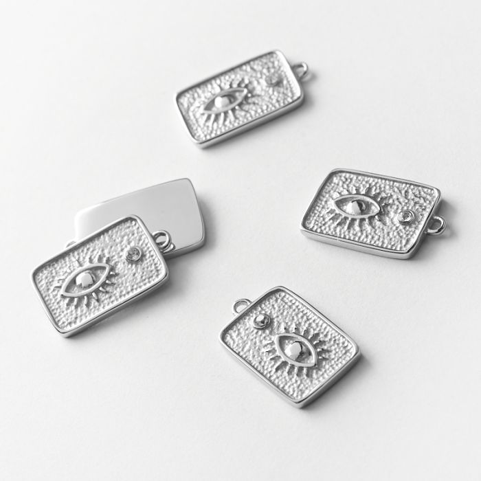 Zawieszka ze stali chirurgicznej prostokąt z okiem proroka i cyrkonią w kolorze srebrnym 23x14mm