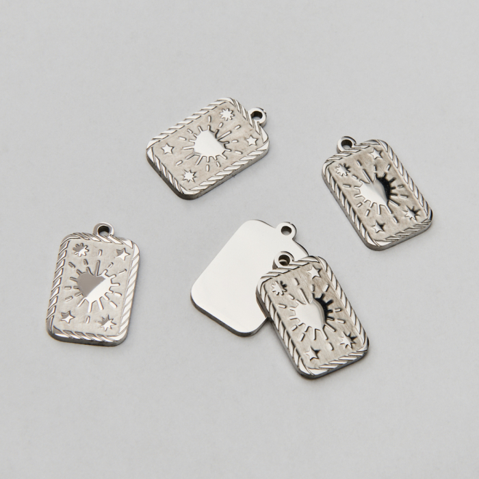 Zawieszka ze stali chirurgicznej prostokąt z sercem w kolorze srebrnym 17mm