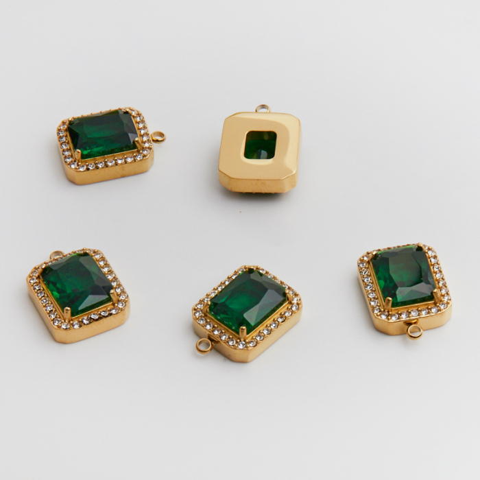 Zawieszka ze stali chirurgicznej prostokąt z zieloną cyrkonią w kolorze złotym 16,5mm PVDTo dopracowany produkt ze stali chirurgicznej 316L, który łączy praktyczność z estetycznym wyglądem. W biżuterii handmade stal chirurgiczna 316L jest ceniona za dobry wygląd, odporność na korozję i wygodę codziennego użytkowania. Wykończenie w kolorze złotym uzyskane metodą PVD.Zawieszka ze stali chirurgicznej 316L to dekoracyjny element, który nadaje biżuterii charakteru i pozwala tworzyć spersonalizowane projekty. Świetnie sprawdza się w naszyjnikach, bransoletkach, kolczykach oraz drobnych charmsach.Forma lub motyw