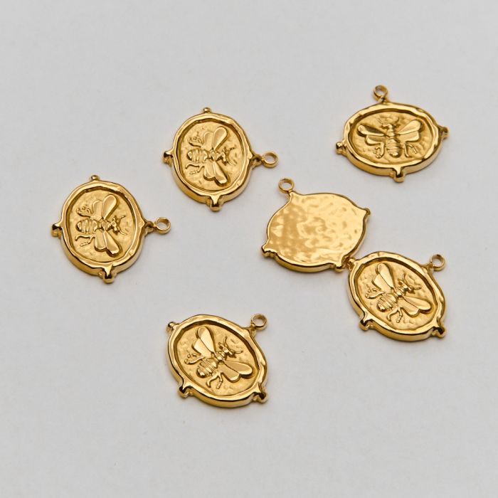 Zawieszka ze stali chirurgicznej pszczoła w owalu w kolorze złotym 17mm PVD