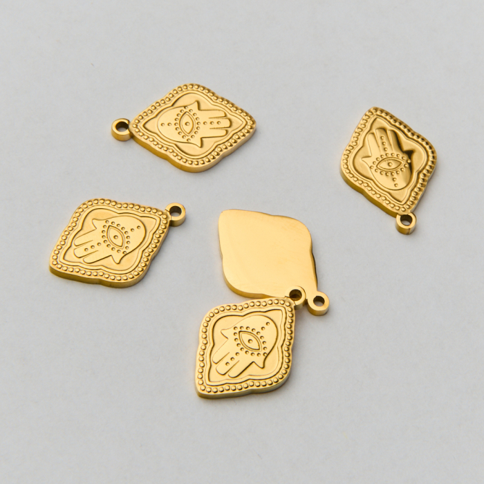 Zawieszka ze stali chirurgicznej ręka Fatimy w kolorze złotym 16mm PVD