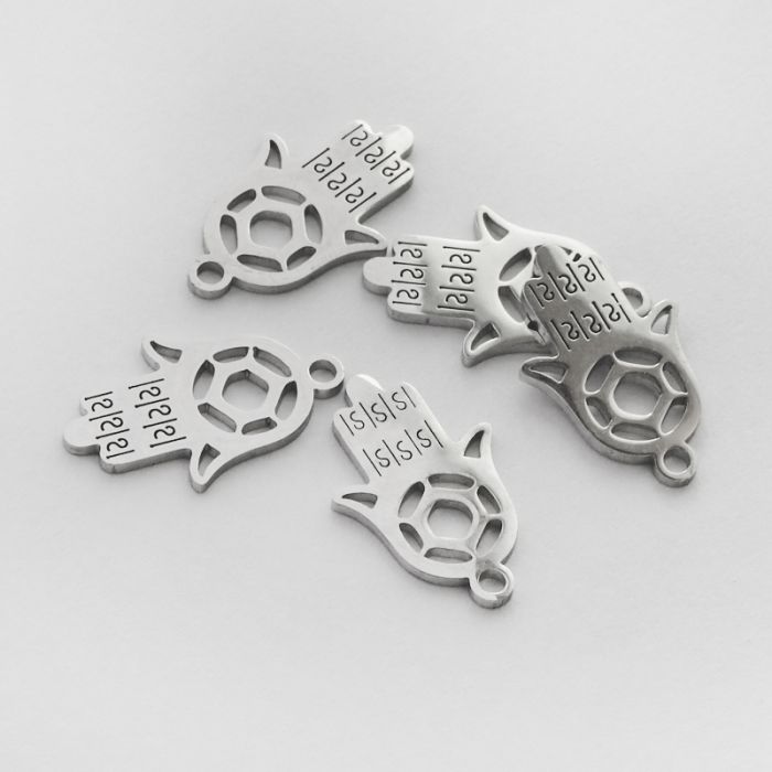 Zawieszka ze stali chirurgicznej ręka fatimy z gwiazdką w kolorze srebrnym 17mm
