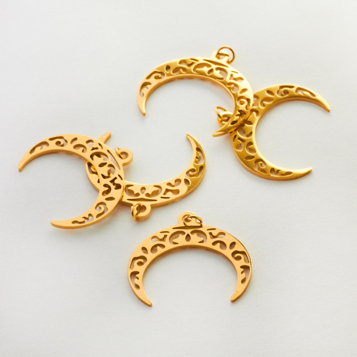 Zawieszka ze stali chirurgicznej róg obfitości ażurowy w kolorze złotym 21,5mm PVDTo trwały element biżuterii lub półfabrykat jubilerski, który dobrze sprawdza się w codziennych realizacjach. Stal chirurgiczna 316L dobrze sprawdza się w biżuterii noszonej na co dzień, ponieważ łączy trwałość z estetycznym wykończeniem. Wykończenie w kolorze złotym uzyskane metodą PVD.Zawieszka ze stali chirurgicznej 316L to dekoracyjny element, który nadaje biżuterii charakteru i pozwala tworzyć spersonalizowane projekty. Świetnie sprawdza się w naszyjnikach, bransoletkach, kolczykach oraz drobnych charmsach.Forma lub motyw