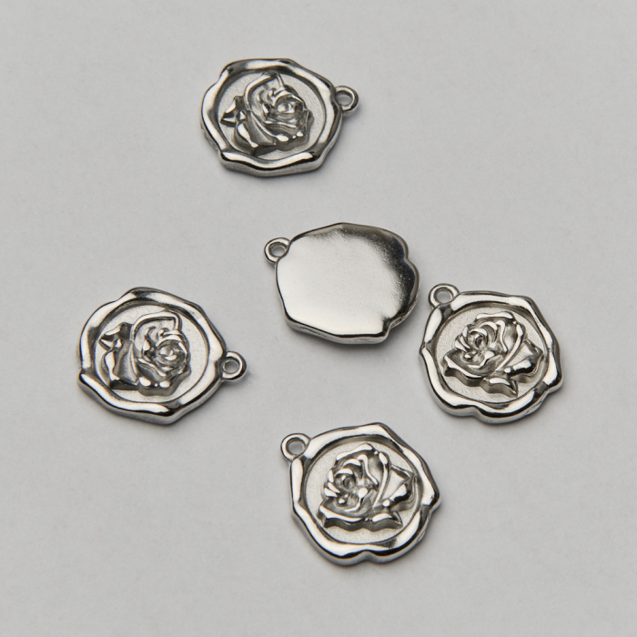 Zawieszka ze stali chirurgicznej róża w kolorze srebrnym 14mmTo dopracowany produkt ze stali chirurgicznej 316L, który łączy praktyczność z estetycznym wyglądem. Stal chirurgiczna 316L dobrze sprawdza się w biżuterii noszonej na co dzień, ponieważ łączy trwałość z estetycznym wykończeniem.Zawieszka ze stali chirurgicznej 316L to dekoracyjny element, który nadaje biżuterii charakteru i pozwala tworzyć spersonalizowane projekty. Świetnie sprawdza się w naszyjnikach, bransoletkach, kolczykach oraz drobnych charmsach.Forma lub motyw
