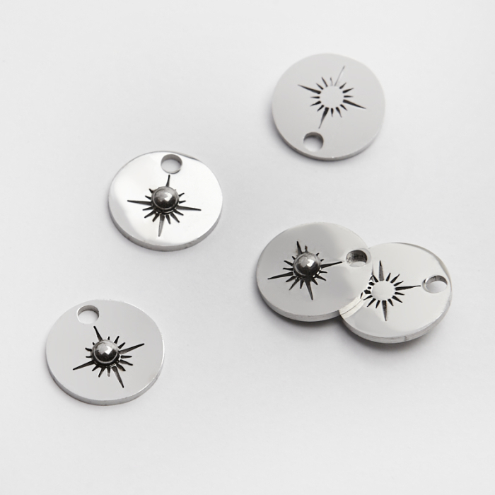 Zawieszka ze stali chirurgicznej róża wiatrów na kółku w kolorze srebrnym 12mm