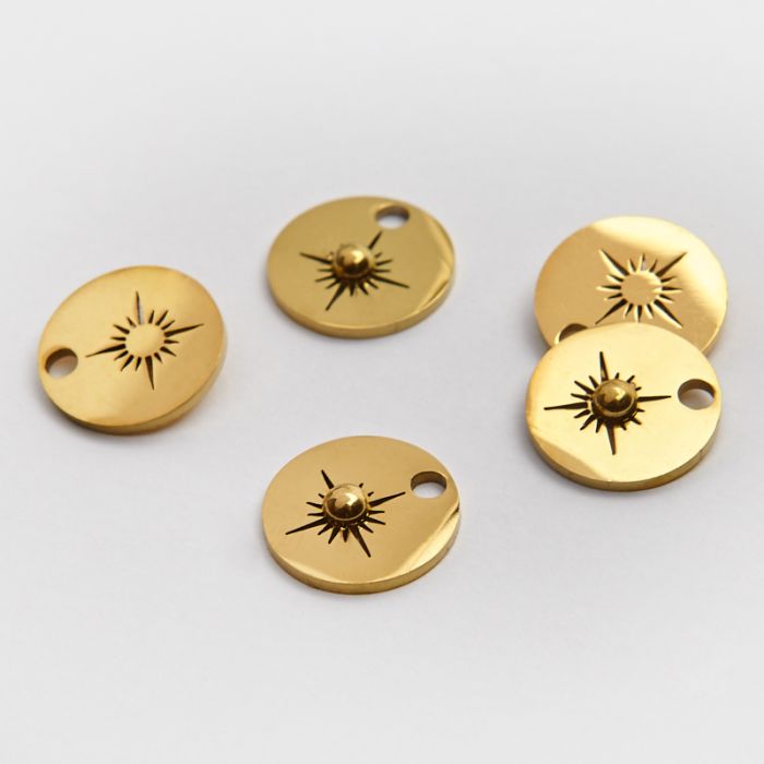 Zawieszka ze stali chirurgicznej róża wiatrów na kółku w kolorze złotym 12mm
