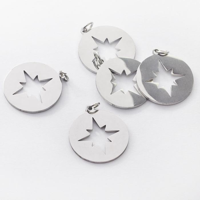 Zawieszka ze stali chirurgicznej róża wiatrów w kółku w kolorze srebrnym 20mm
